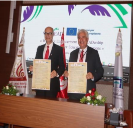 A partnership agreement was signed between the University of Tunis El Manar (UTM), represented by President Moez Chafra, and the Agence Universitaire de la Francophonie (AUF), represented by Mr. Mejdi Ayari, Senior Project Manager.