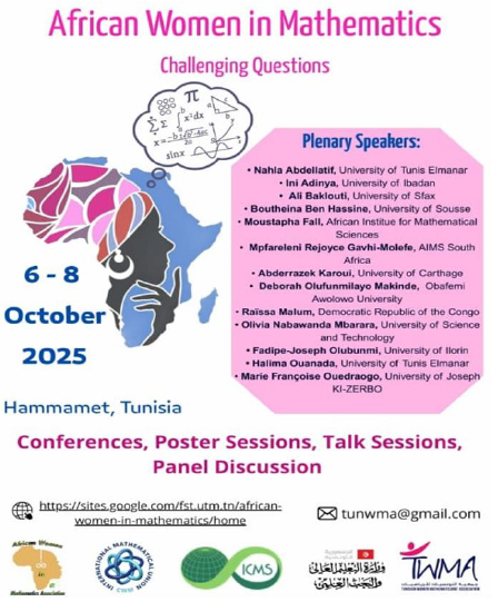 The conference “African Women in Mathematics: Challenging Questions” was successfully held in Tunisia. The event convened a diverse group of established and early-career researchers from over [Number, if known] African and international institutions, fostering a dynamic and inclusive environment for scientific dialogue.