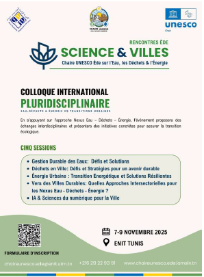 In line with this commitment, the National Engineering School of Tunis (ENIT), in partnership with the UNESCO Chair on Water, Waste and Energy, organized the International Multidisciplinary Colloquium “Science & Villes.”